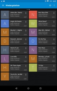 Das Interface ist nicht das Hübschste, das Playlistmanagement mit Gesten ist etwas ungeschickt gelöst und führt oft zu Fehlbedienungen. Die Playlistansicht hat einen eigenen Screen bekommen, was dazu führt, dass man oft zwischen Playlist und dem Now Playing-Screen mit den Transportbuttons hin und her wechselt.