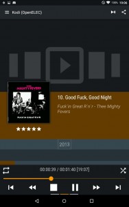 Kodi hat eine ausgezeichnete API mit der man das Mediacenter im lokalen LAN steuern, Datenbanken abfragen und noch anderen Schnickschnack anstellen kann. Das prädestiniert natürlich Mobilgeräte mit Touchscreen dafür, als Bildschirmersatz zu fungieren. So kann man ganz ohne Menükrämpfe und endloses Scrollen durch seine Musik navigieren, in der Datenbank suchen, Alben und Songs in die aktuelle Playlist einreihen etc.