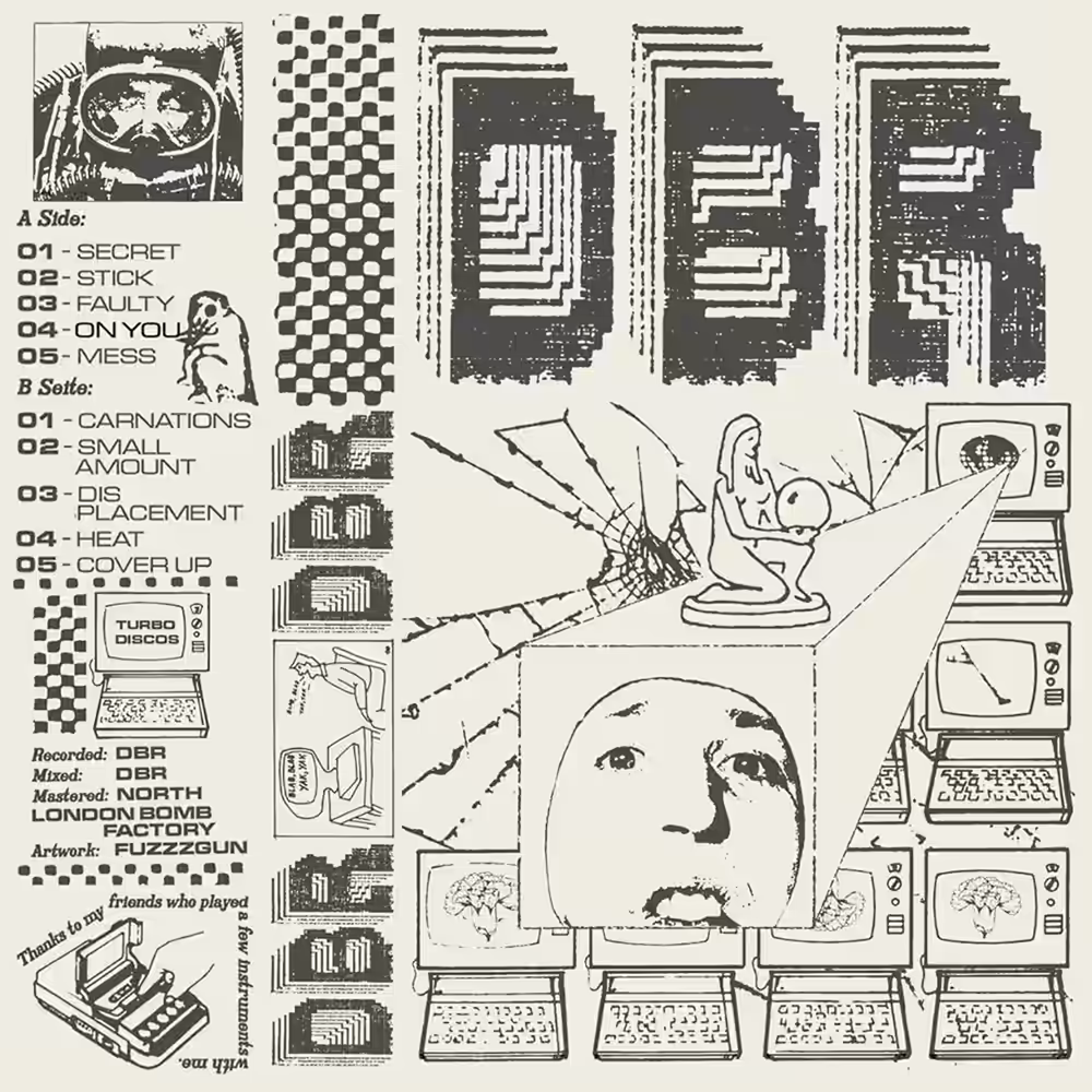 Das Berliner Post Punk-Soloprojekt DBR ist jetzt schon eine ganze Weile unterwegs und hat bislang eine Langspielkassette und ein ganzes Bündel an EPs veröffentlicht, zuerst unter dem Namen Dee Bee Rich, auf späteren Releases dann zu DBR abgekürzt. Die neueste, auf Turbo Discos erschienene Kassette ist dabei mal ganz locker Dee Bees ansprechendstes und vielfältigstes Werk seit einer ganzen Weile, auf dem er die minimalistisch-kleinlaute Ästhetik, in die sich sein Sound graduell hineinentwickelt hat, mit einem ausgeprägten Sinn für Melodie und Eleganz ausstattet, dabei aber weiterhin durchweg verspielt bis verspult rüberkommt.